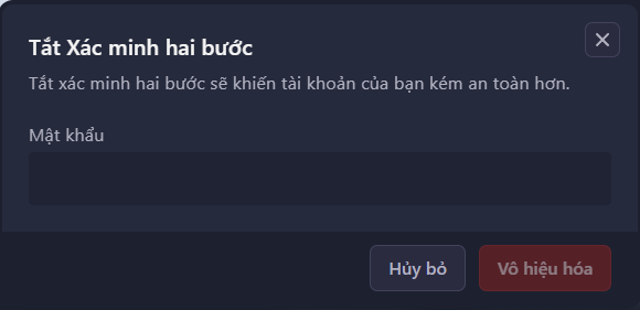 Bước 3. Nhấn Vô hiệu hóa xác thực hai bước trong mục Xác thực hai lớp.